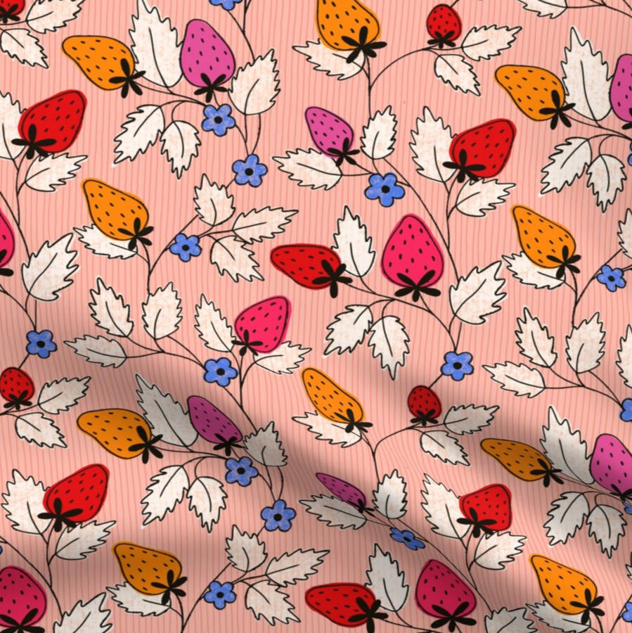 My patterns are hand-drawn and built around bold, playful color palettes, organic shapes, and graphic details. I’m inspired by nature, everyday objects, and imperfect textures — the kinds of things that feel familiar, a little nostalgic, and visually comforting.I enjoy exploring a balance between expressive illustration and clean, modern design, creating patterns that feel lively but still work beautifully across fabric, wallpaper, stationery, and home goods.