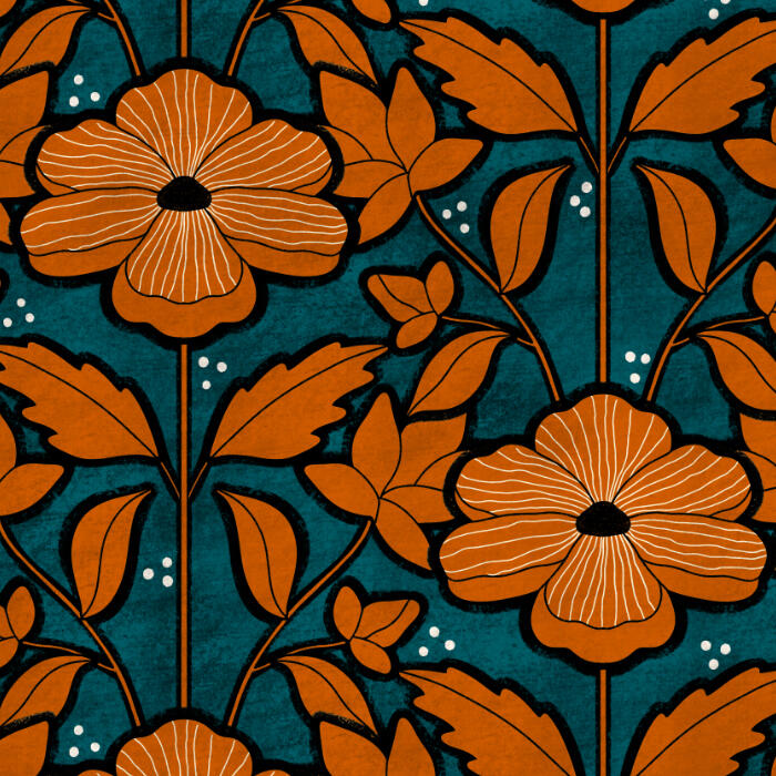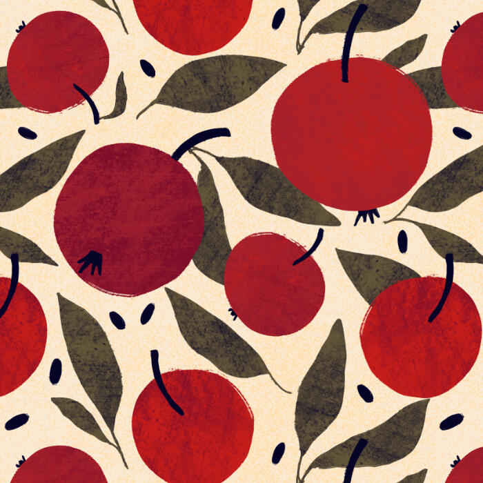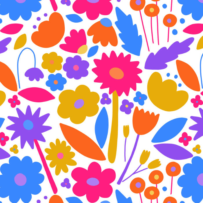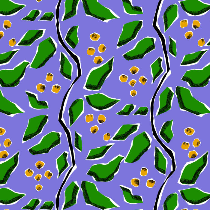 My patterns are hand-drawn and built around bold, playful color palettes, organic shapes, and graphic details. I’m inspired by nature, everyday objects, and imperfect textures — the kinds of things that feel familiar, a little nostalgic, and visually comforting.I enjoy exploring a balance between expressive illustration and clean, modern design, creating patterns that feel lively but still work beautifully across fabric, wallpaper, stationery, and home goods.